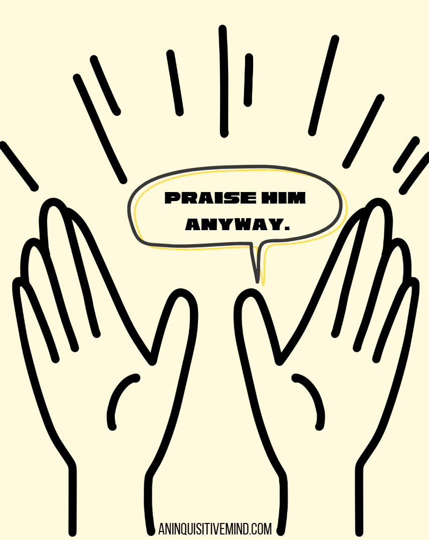 I understand that there may be some goals or plans you may have wanted to have achieved by now, and perhaps they have not yet happened. Through this you may have started believing in the lie that it won’t happen at all but I wanted to encourage you to ‘Praise Him anyway’.